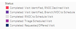 The Visit Status Distribution tile shows the breakout of the different "visit" status options - if the organization has multiple status options with the word "visit". Each status is represented by a different color (refer to key below).