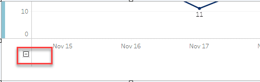 Use the "-" or "+" button at the lower left of the report to move dates in our out. The zoom lets the user view the data in the selected time frame grouped by day, week, month, quarter or year. Zooming in or out changes which grouping you're using within the time frame you have selected in the filters.