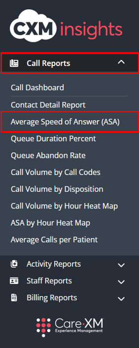 Click on Call Reports, then "Average Speed of Answer (ASA)":